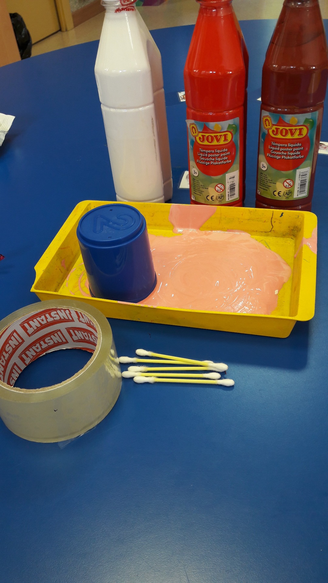 Materiales: Cartulina rosa, pintura de dedos marrón y rosa(si no también podéis mezclar rojo y blanco) alambres de pelo rosa, rotulador negro y rojo,celo, bastoncillos,tijeras,pegamento, cubilete para dar forma redonda.