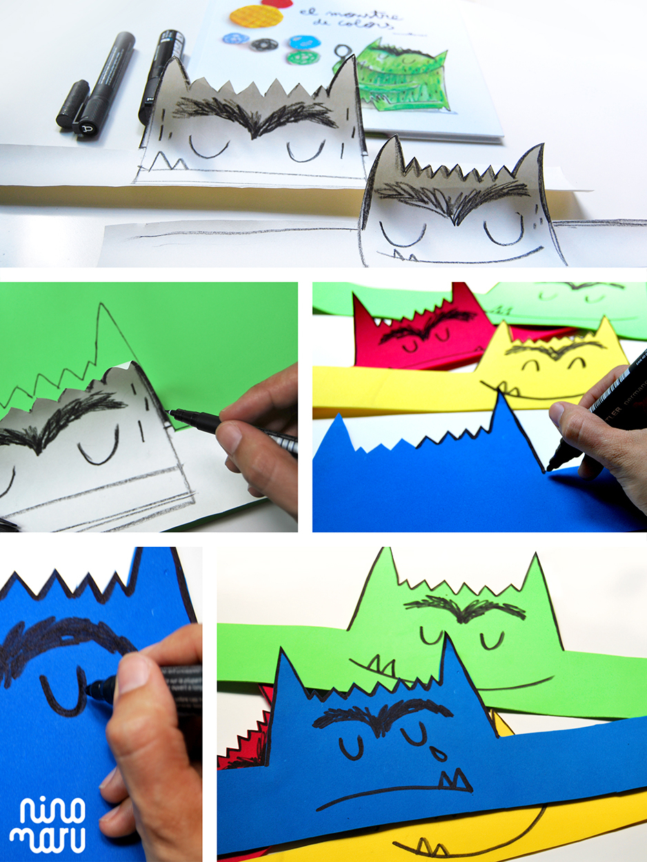 Te proponemos unas coronas del monstruo de las emociones (si no lo conoces puedes leer nuestro apartado de cuentos) para trabajarlas según las edades contando anécdotas que recuerden según la corona que lleven puesta o escenificando (ejemplo: lleva la corona roja de la ira y se cruza de brazos frunciendo el ceño).